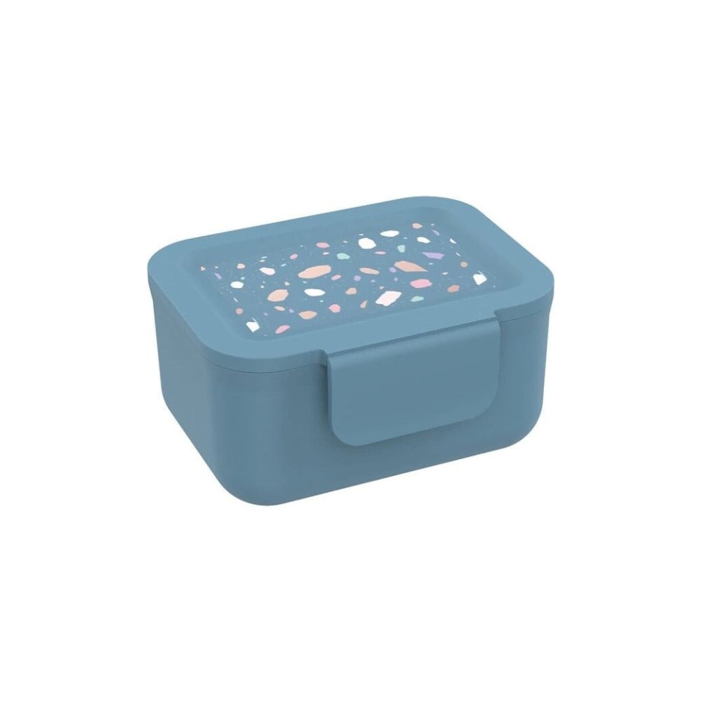 Diese kleine und superpraktische Snackbox in Terrazzo-Blau ist ideal für Snacks, Obst oder kleine Mittagessen. Leicht in der Tasche oder im Rucksack zu transportieren. Eine perfekte Größe für Snacks und kleine Mahlzeiten, für den täglichen Gebrauch.