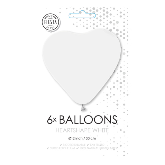 Weiße Luftballons 6 Stück. Die Größe der Ballons ist 30cm.