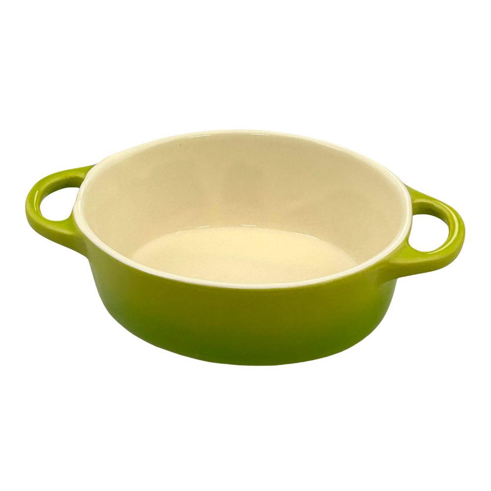 Diese Mini-Eintopf von Haut Cuisine ist perfekt zum Servieren einzelner Portionen oder kleiner Ofengerichte. Der Topf hat ein elegantes ovale Form und ein frisches lindgrün Farbe, die jedem Tisch eine fröhliche Note verleiht.