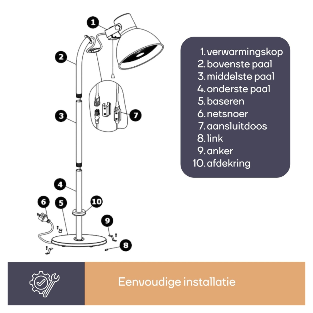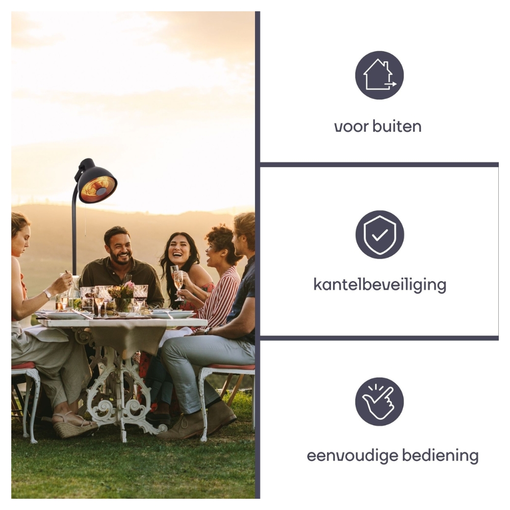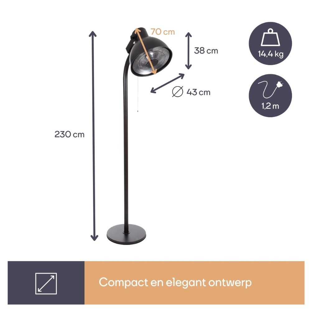 Der Perel Terrassenheizer Lantern ist ein stilvoller, stehender Terrassenheizer (43 cm) mit 2000W Kohlerohr, 3 Heizstufen und Kippschutz. Genießen Sie mit diesem leistungsstarken und sicheren Heizer gemütliche Stunden im Freien.