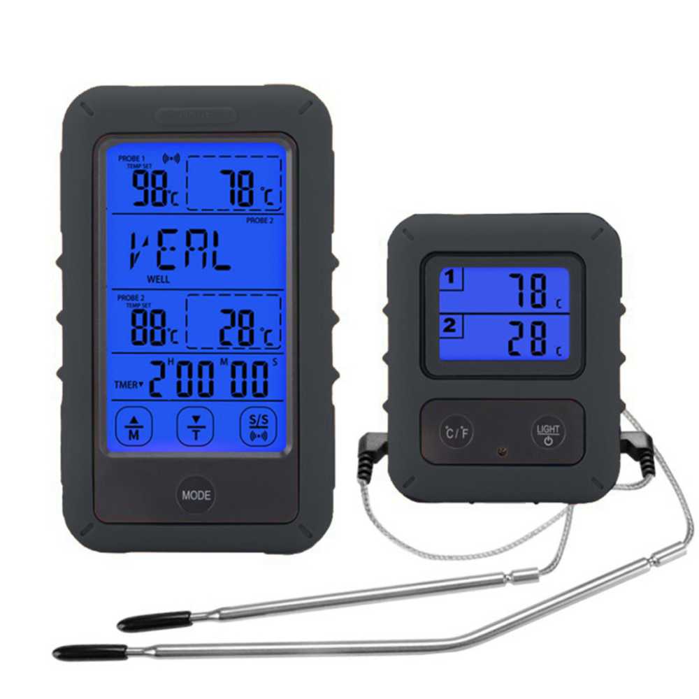 8 vorprogrammierte Speisen (statt der üblichen 5). Bis zu 5 Kochstufen (statt 3). Mobiler Handempfänger mit einer Funkreichweite von bis zu 90 m (statt 30-40 m). 2 unabhängige Sensoren, Timer, 2-Wege-Alarm, ... Und: 100 cm langes Sensorkabel, hitzebeständig bis 380 °C. So können Sie Ihr vielseitiges kabelloses Thermometer auch beim Grillen sicher verwenden. Und das alles zu einem sehr guten Preis.