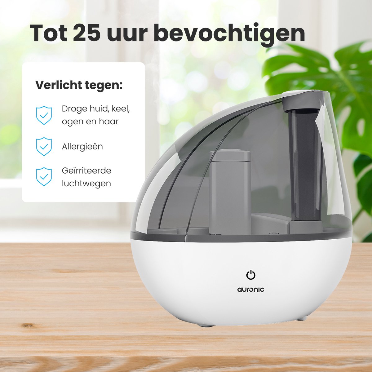 The Auronic Humidifier is the solution to dry air in the cold winter months. With a usage time of one day, you can easily let the humidifier do its job. The Auronic Humidifier is very quiet in operation and thus suitable for the bedroom, study or baby's room, for example. The Auronic humidifier comes with a water filter, extra water filters are available separately.