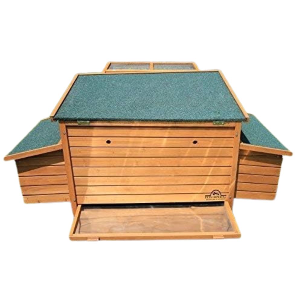 The external external run is 1.4 m long and 91 cm wide. The run can be attached to either the front or back of the Balmoral Chicken Coop. There are 2 nesting boxes, each with 2 individual nesting spaces. You have full access to all parts of the coop. It is easy to assemble with many opening parts: the roof, the nest box, the main living areas, the run.