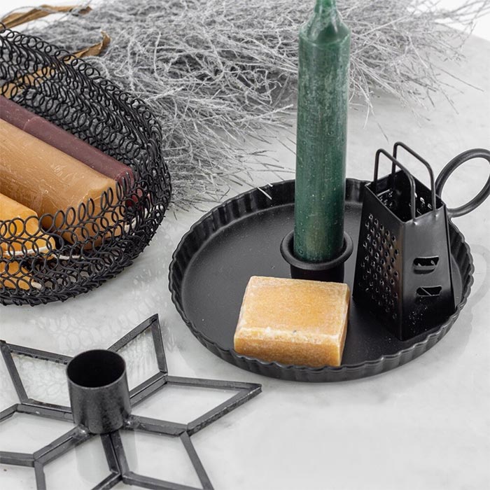 Candle stand black in size 4.5×15.5x13cm. The old-fashioned, portable ear candle holder has been given a new look! With plenty of room for extra decoration, this black metal candle holder is nice for any interior