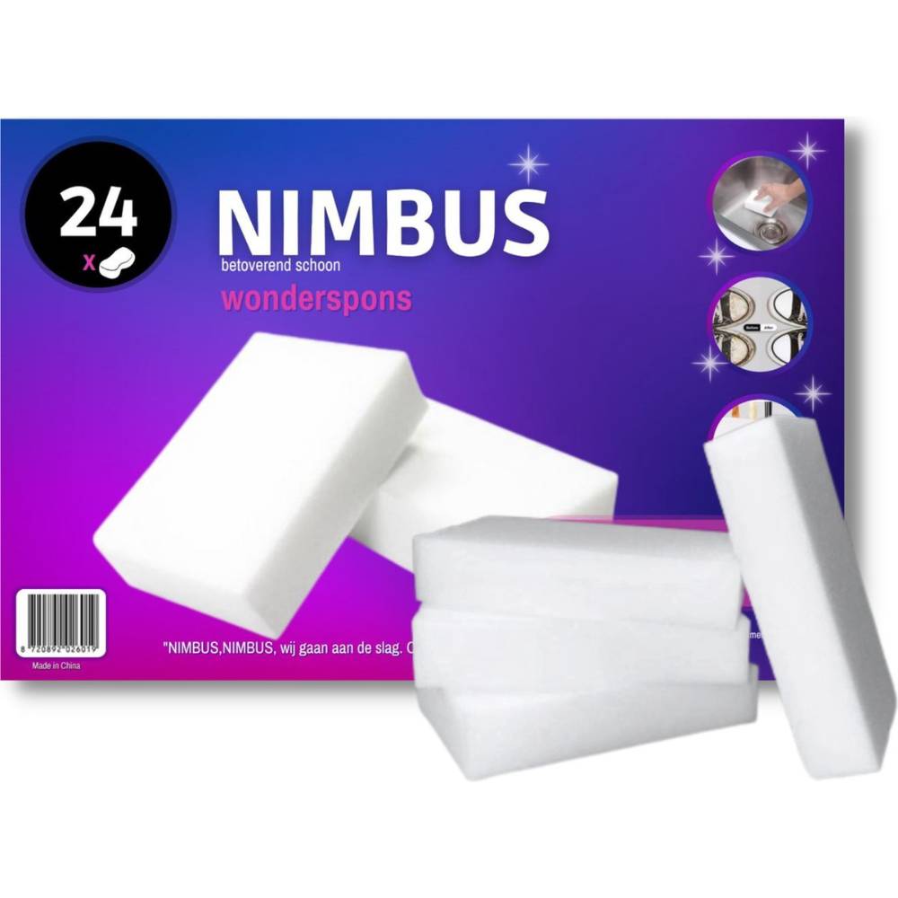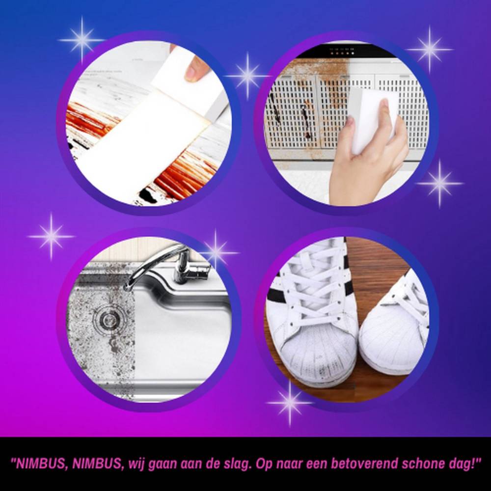 De NIMBUS wonderspons is de ultieme schoonmaaktool die vlekken en vuil moeiteloos verwijdert van verschillende oppervlakten. Of het nu gaat om vlekken op tegels, muren, vloeren, glas, plastic of zelfs lederen oppervlakten, de NIMBUS wonderspons krijgt het allemaal schoon.