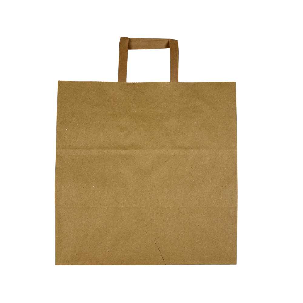 This paper bag comes in a natural brown colour and is made of sturdy paper. Measuring 26 cm wide, 17 cm deep and 27 cm high, the bag offers space for medium to larger items. Suitable for use in retail, hospitality or as gift packaging.