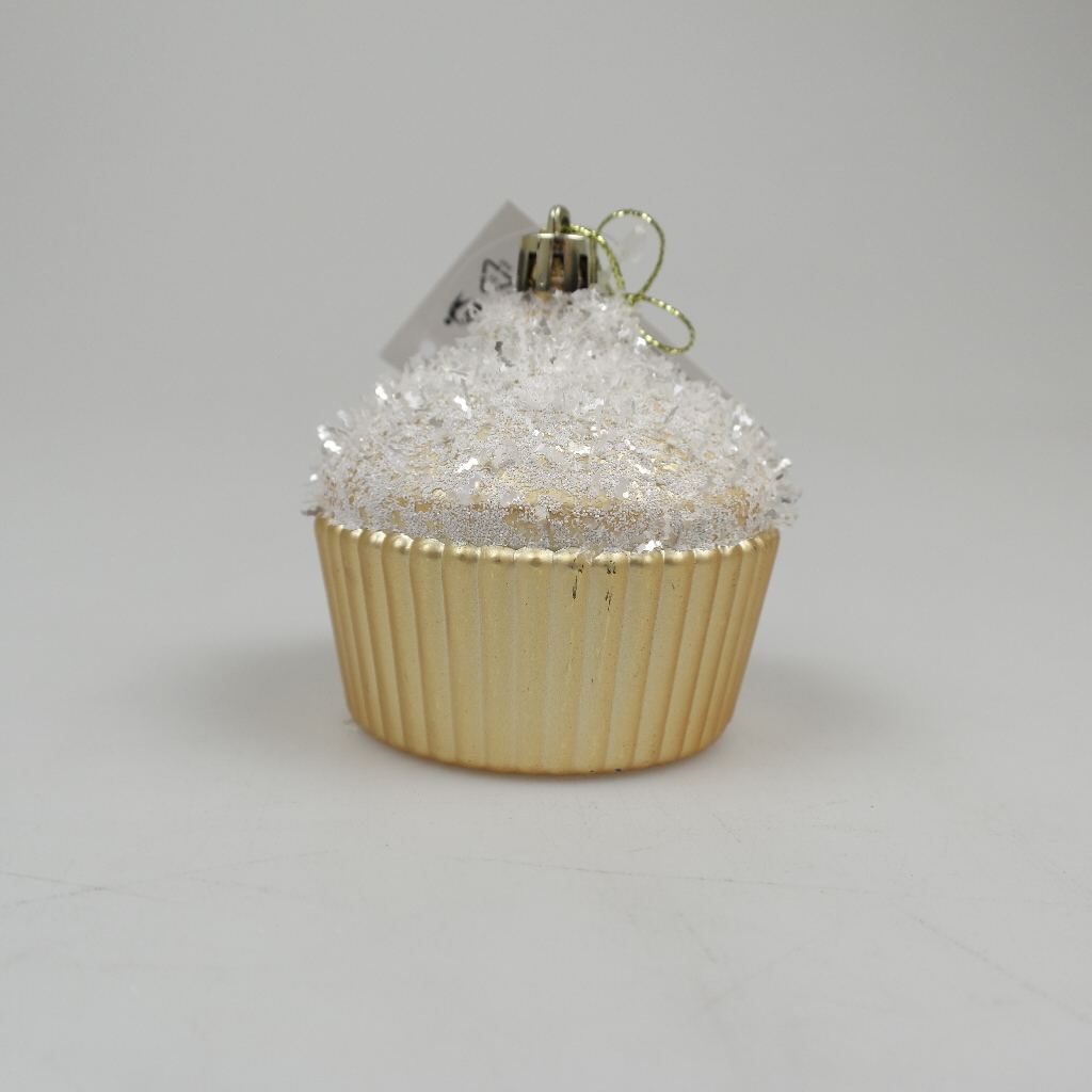 Hanging muffin - approx. 7 x 7 x 7.6 cm - matt gold - glittered white