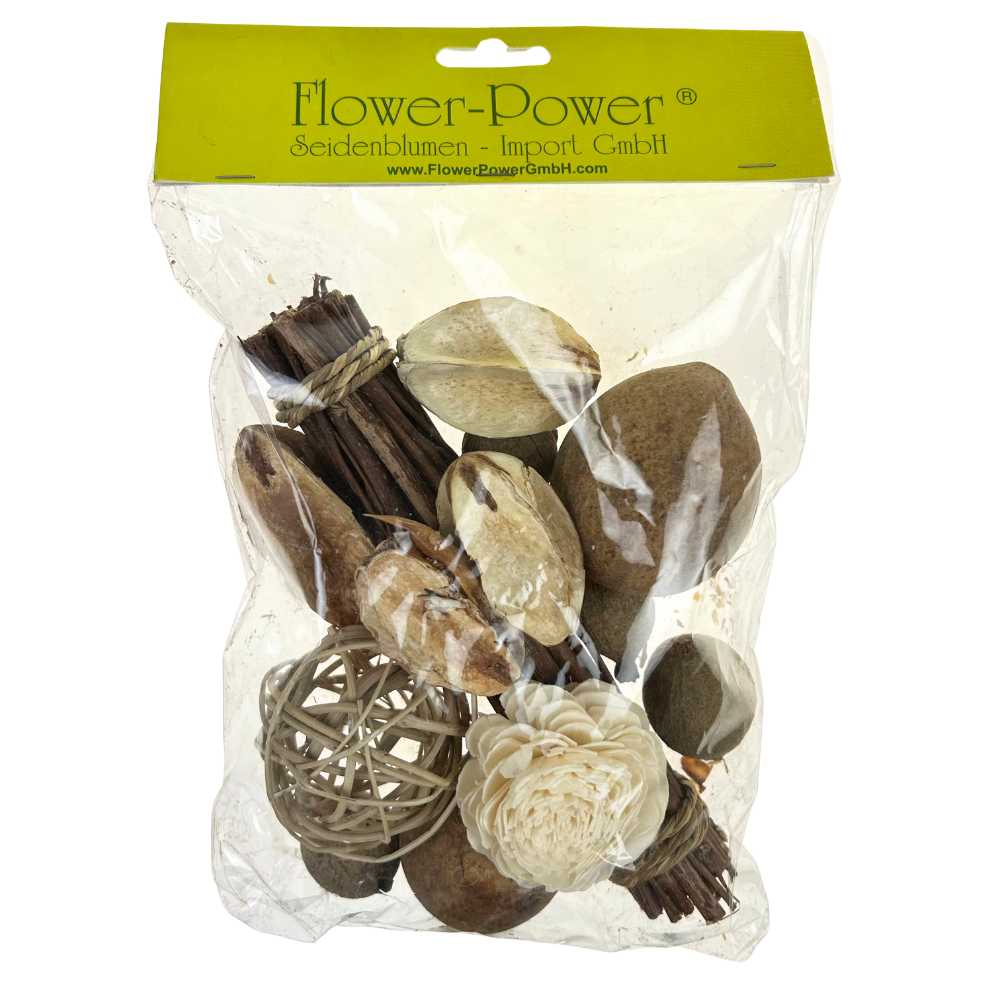 Add a stylish and natural accent to your interior with the Flower-Power Potpourri - Natural. This fragrance-free potpourri consists of a carefully selected mix of dried natural elements in warm earth tones, such as brown, beige and sand.
