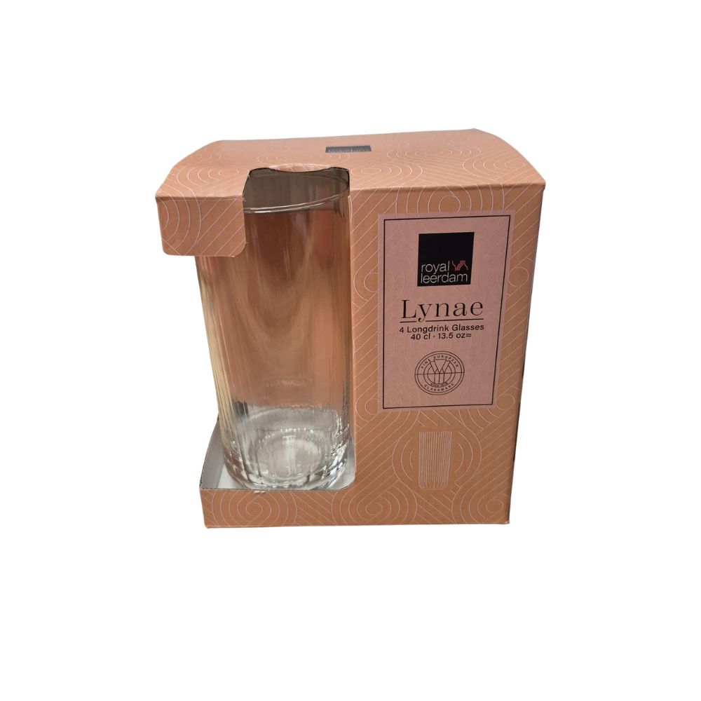 Enjoy your favourite drinks with the Royal Leerdam Lynea long drink glasses. This set of 4 glasses (40cl) combines style with quality, perfect for everyday use or festive occasions. Dishwasher-safe.
