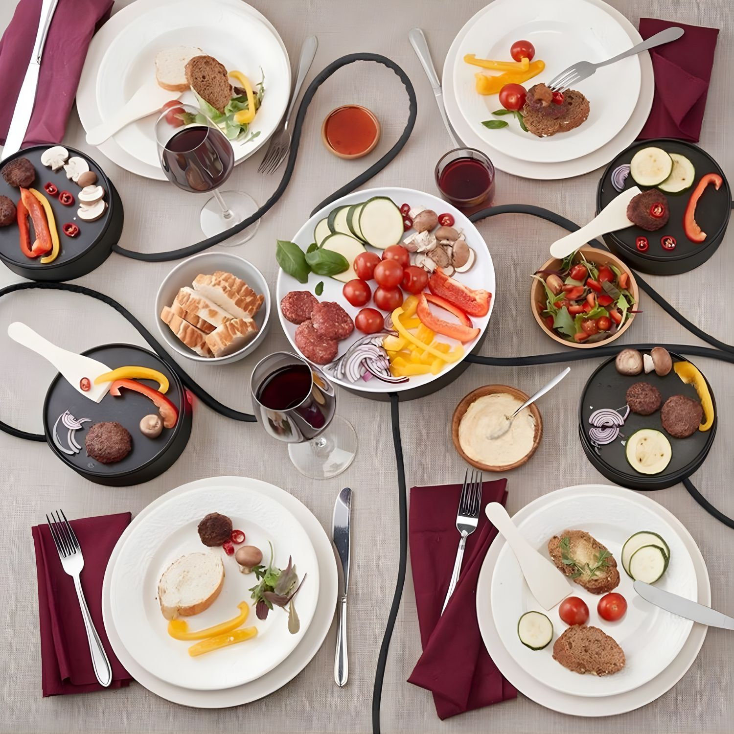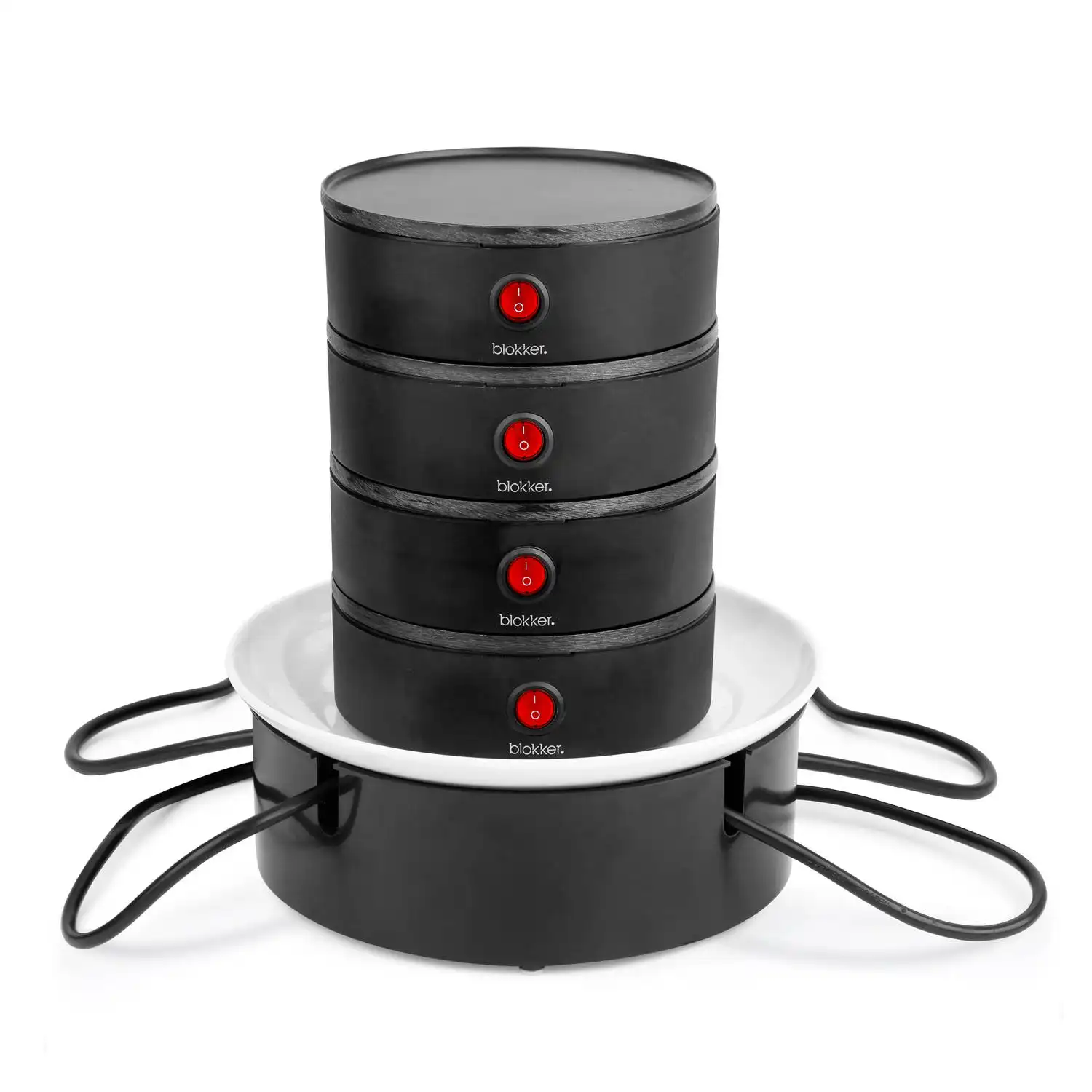 De Blokker BL-24708 Gourmet 4inOne is de ideale set voor een gezellig en persoonlijk diner van 1 tot 4 personen. Deze unieke gourmetset bestaat uit vier aparte, stapelbare kookunits, elk met een diameter van 16 cm. Dankzij de individuele grillmodules kan iedereen naar eigen smaak en tempo zijn gerechten bereiden.