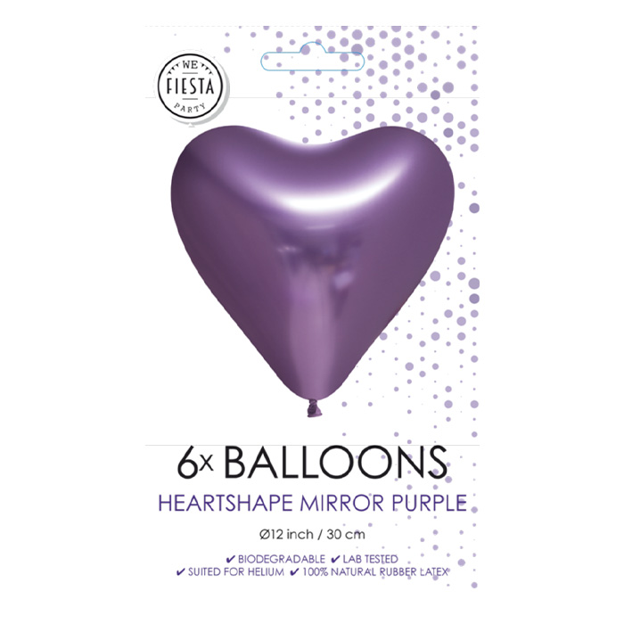 Fiësta – Ballonnen – 6st – hartvormige spiegel paars – Ø30cm