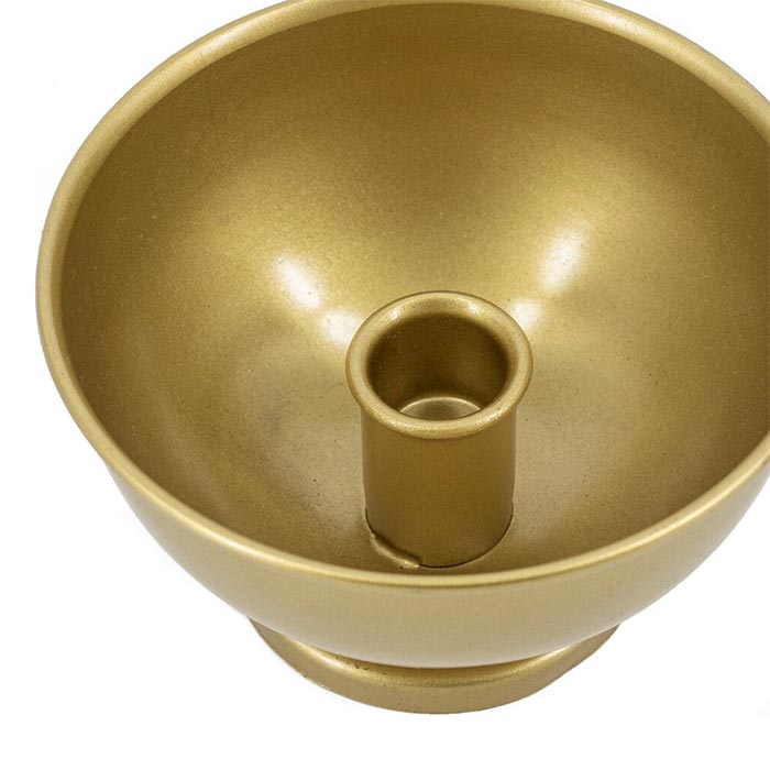 A ‘touch of gold’ it is! Hoe stijlvol en chique is deze ronde goudkleurige kaarsenhouder? Perfect om een mooie (led)dinerkaars in te zetten. De kaarshouder is daarnaast perfect te combineren met andere goudkleurige kandelaars of vaasjes. Het formaat van deze metalen kaarsenstandaard is 7x13x7cm.