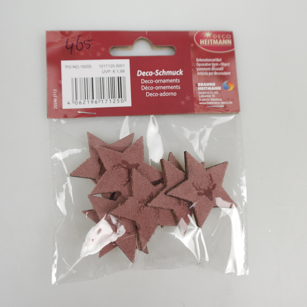 Wooden stars/trees with sk. label – velvet – assorted – approx. 3.5 cm