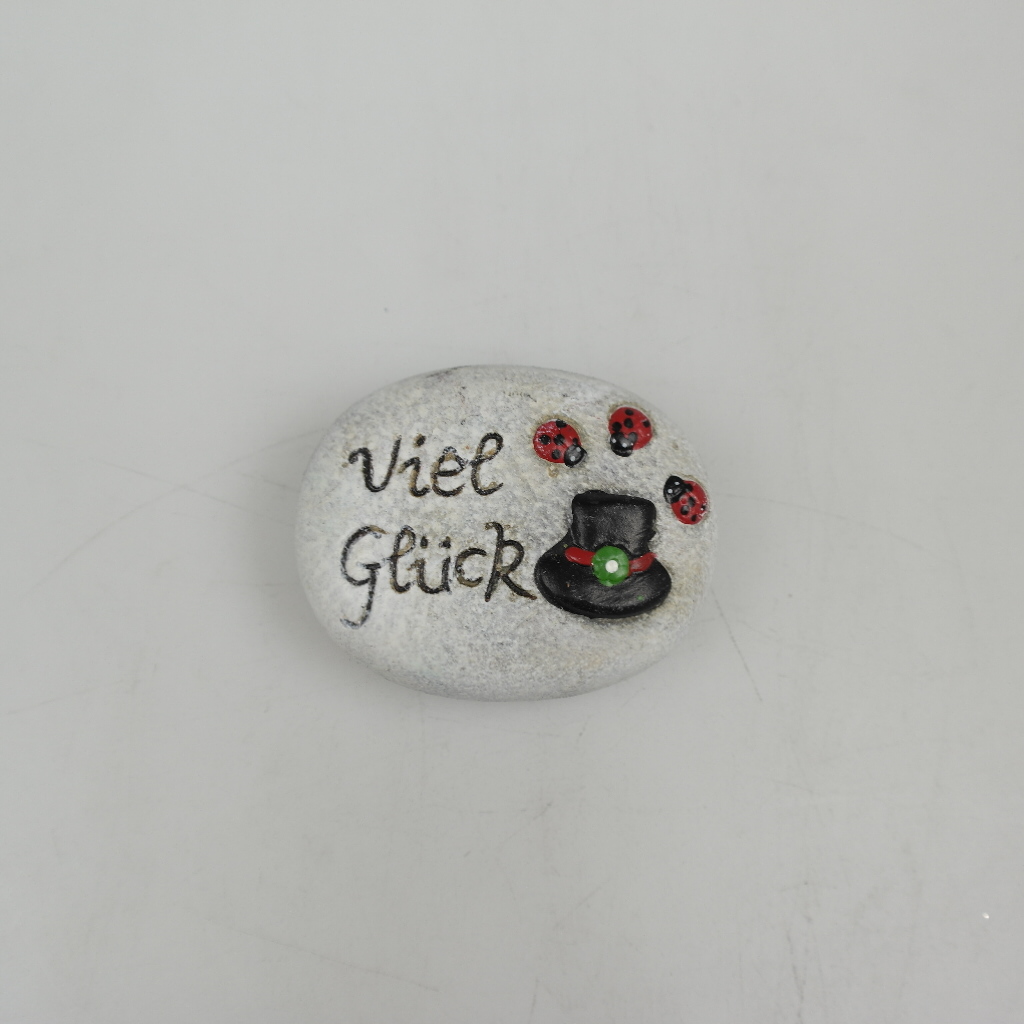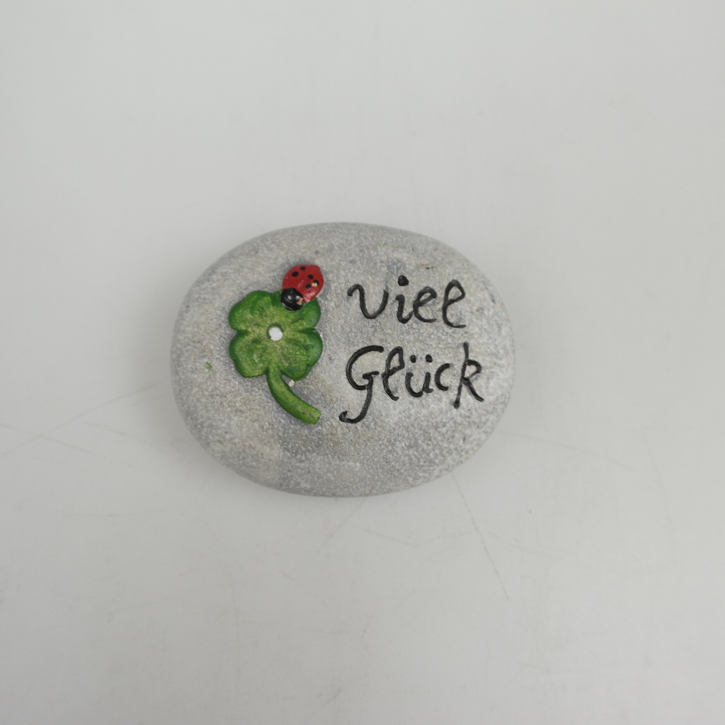 Ceramic decorative stone – Good luck – sort. approx. 6.5 cm gray