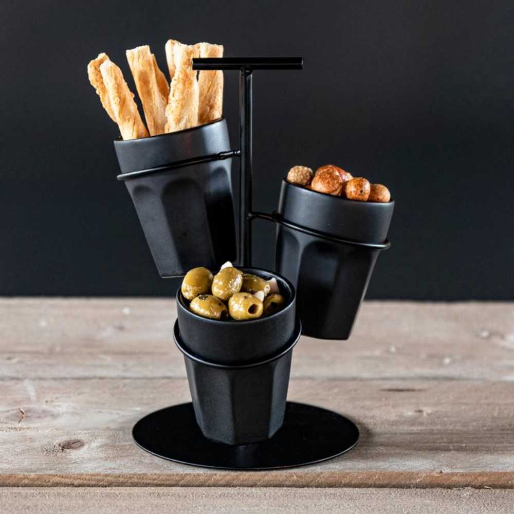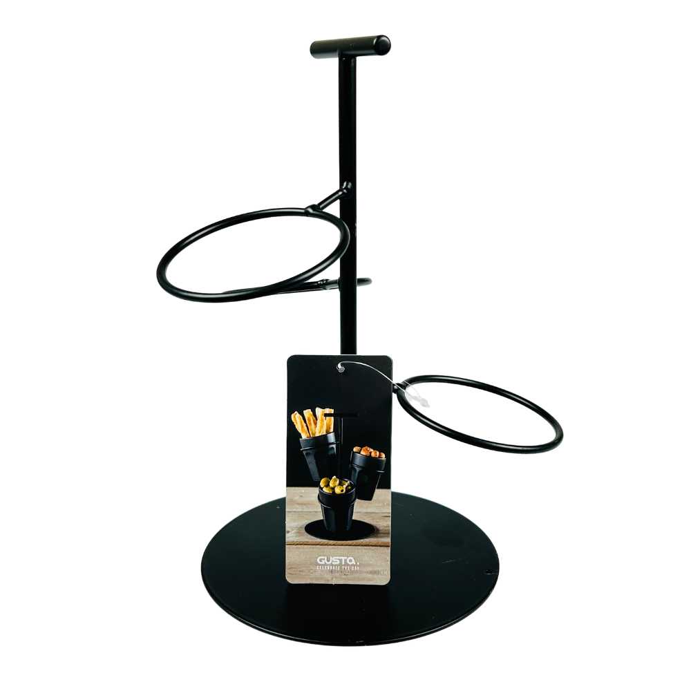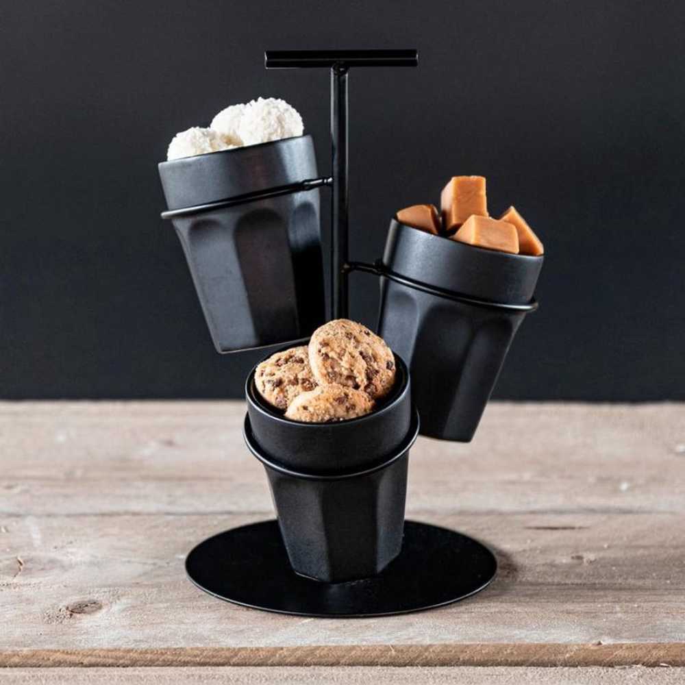 Mokkenrek van metaal met een diameter van 18,5 cm en een hoogte van 25,7 cm. Geschikt voor het opbergen en organiseren van meerdere mokken op een compacte plek.