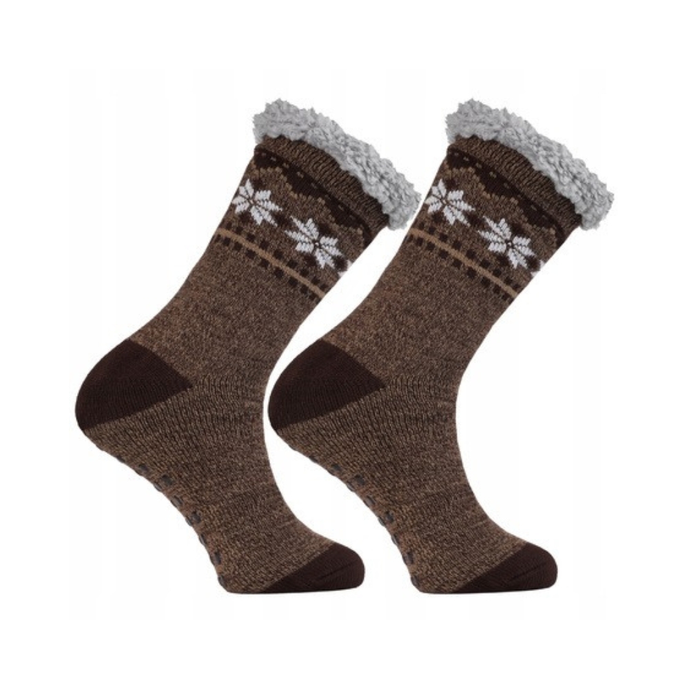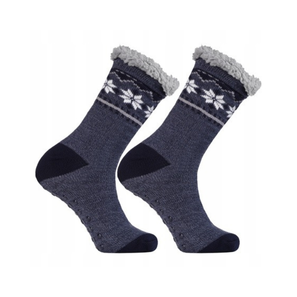 Huissokken, deze huissok snow voor volwassenen is heerlijk zacht en heeft een dikke, warme badstof binnenkant. Op de zool zitten antislip nopjes, zodat je niet uitglijdt. Ideaal voor op de bank. Materiaal 100% polyester en 100% acryl.