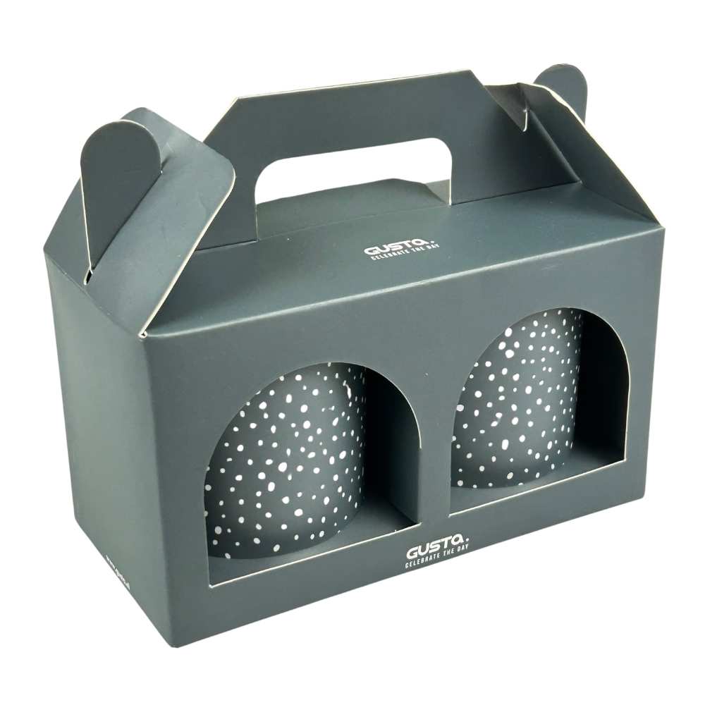 Breng een uniek accent aan in je interieur met deze stijlvolle theelichthouders van Gusta. De set bestaat uit twee theelichthouders van groen glas met witte spikkels, wat een speels en modern effect geeft. De warme gloed van de kaarsjes zorgt voor een sfeervolle ambiance. Geleverd in een mooie geschenkverpakking, perfect als cadeau!