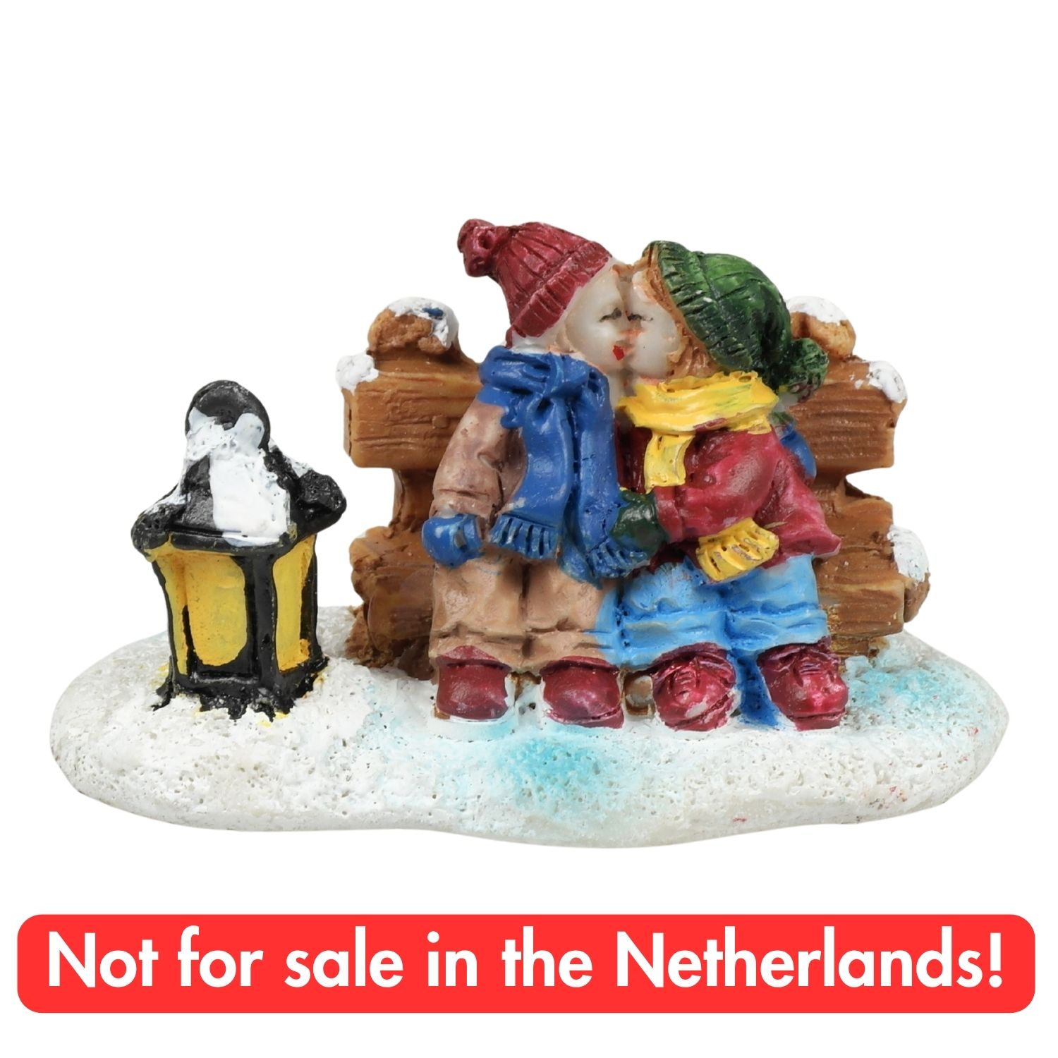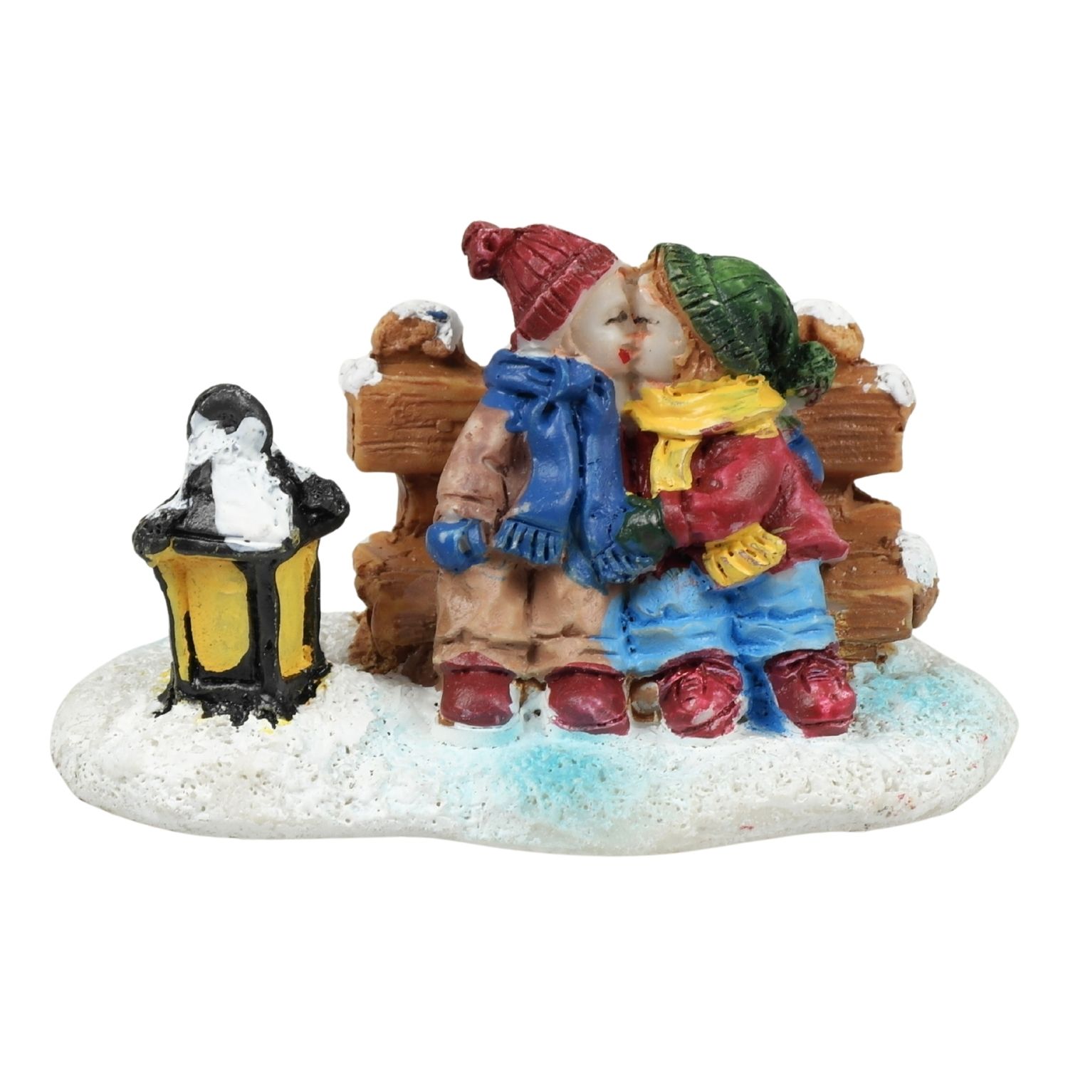 Voeg een hartverwarmend en schattig tafereel toe aan je miniatuurdorp met dit beeldje van Kinderen Zoenend op een Bankje uit de serie ‘Typisch Hollands’ van Blokker. Dit gedetailleerde decoratiestuk is gemaakt van duurzaam polyresin en is voorzien van LED-verlichting om het moment extra sfeervol te maken. Met compacte afmetingen van 7 x 4 x 4 cm past het perfect in een winter- of kerstlandschap.