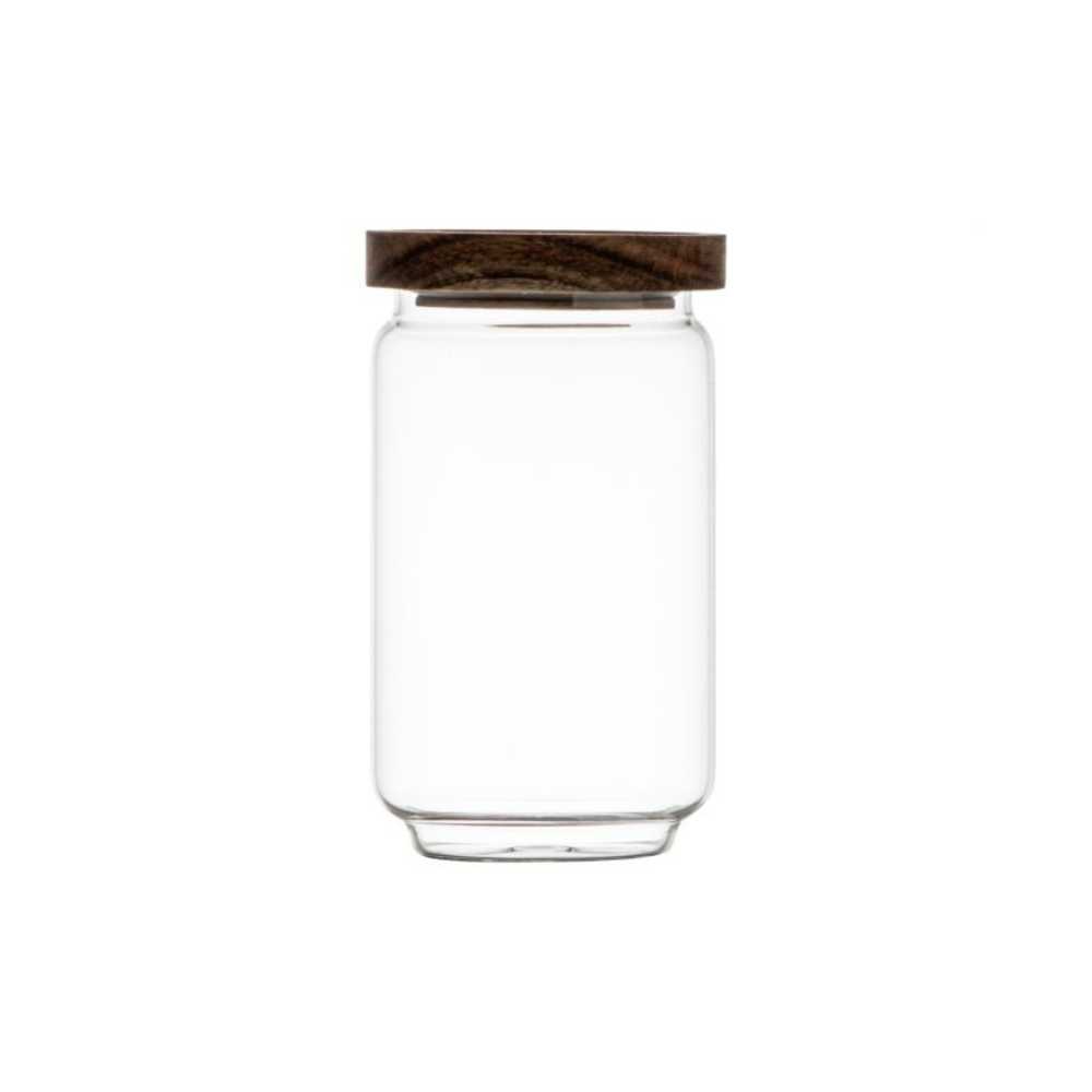 Glazen voorraadpot met een diameter van 9 cm en een hoogte van 16 cm. Geschikt voor het bewaren van droge etenswaren, kruiden of andere keukenbenodigdheden.
